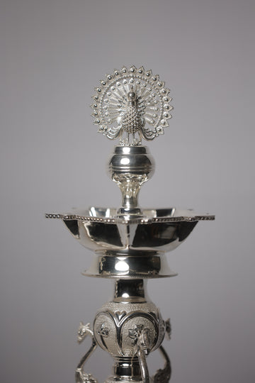 This Deepa adds a touch of royalty and spirituality to any sacred space, making it a perfect choice for devotional ceremonies or as a decorative centerpiece.