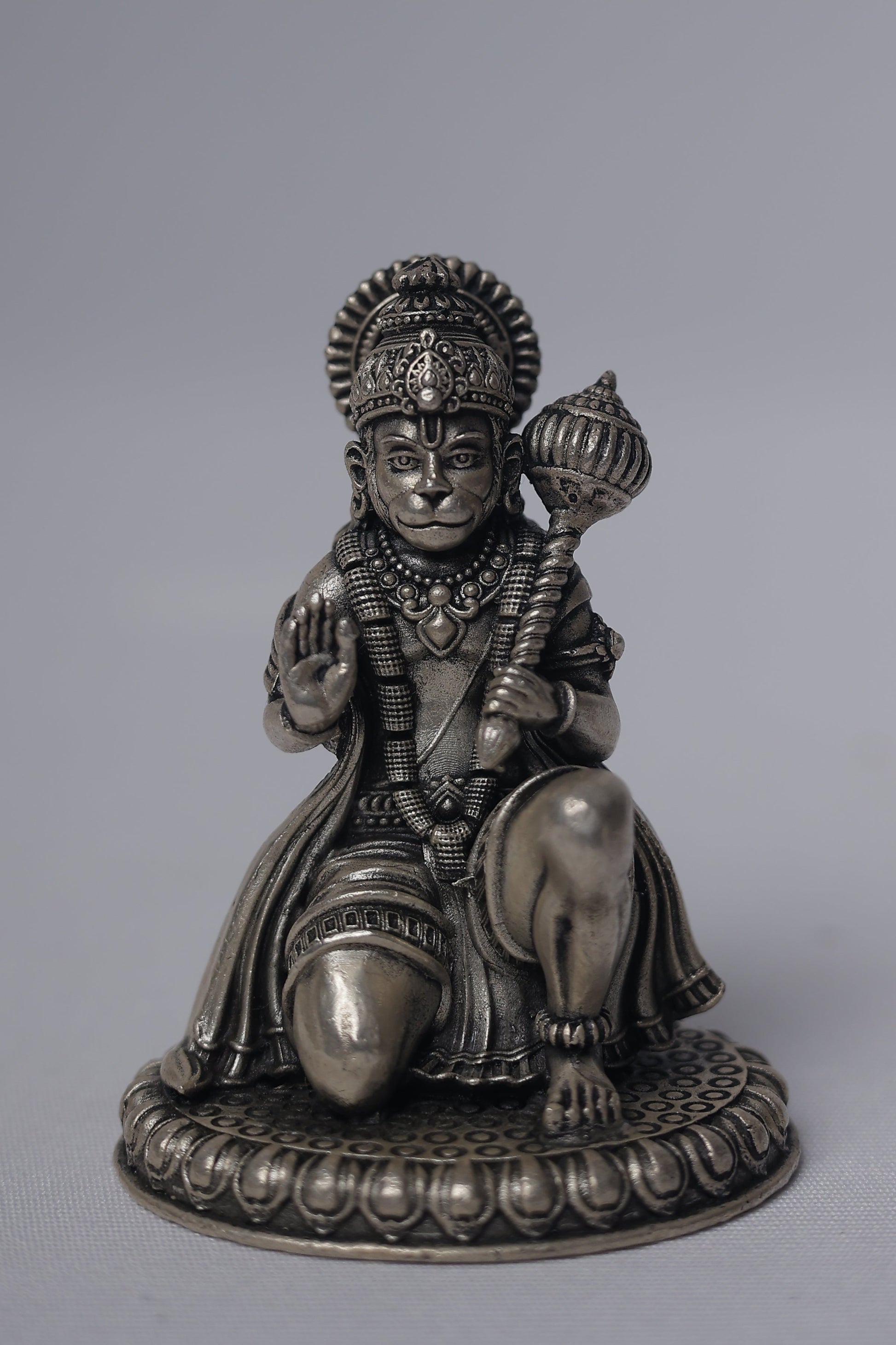 The Vayu Putra Idol is a finely crafted silver depiction of Lord Hanuman, showcasing intricate details that capture his strength, devotion, and divine presence. Made from high-quality silver, this idol is perfect for enhancing your spiritual space, bringing both power and peace to your home or altar. A true symbol of unwavering devotion, it serves as a constant reminder of Lord Hanuman’s blessings and protection.