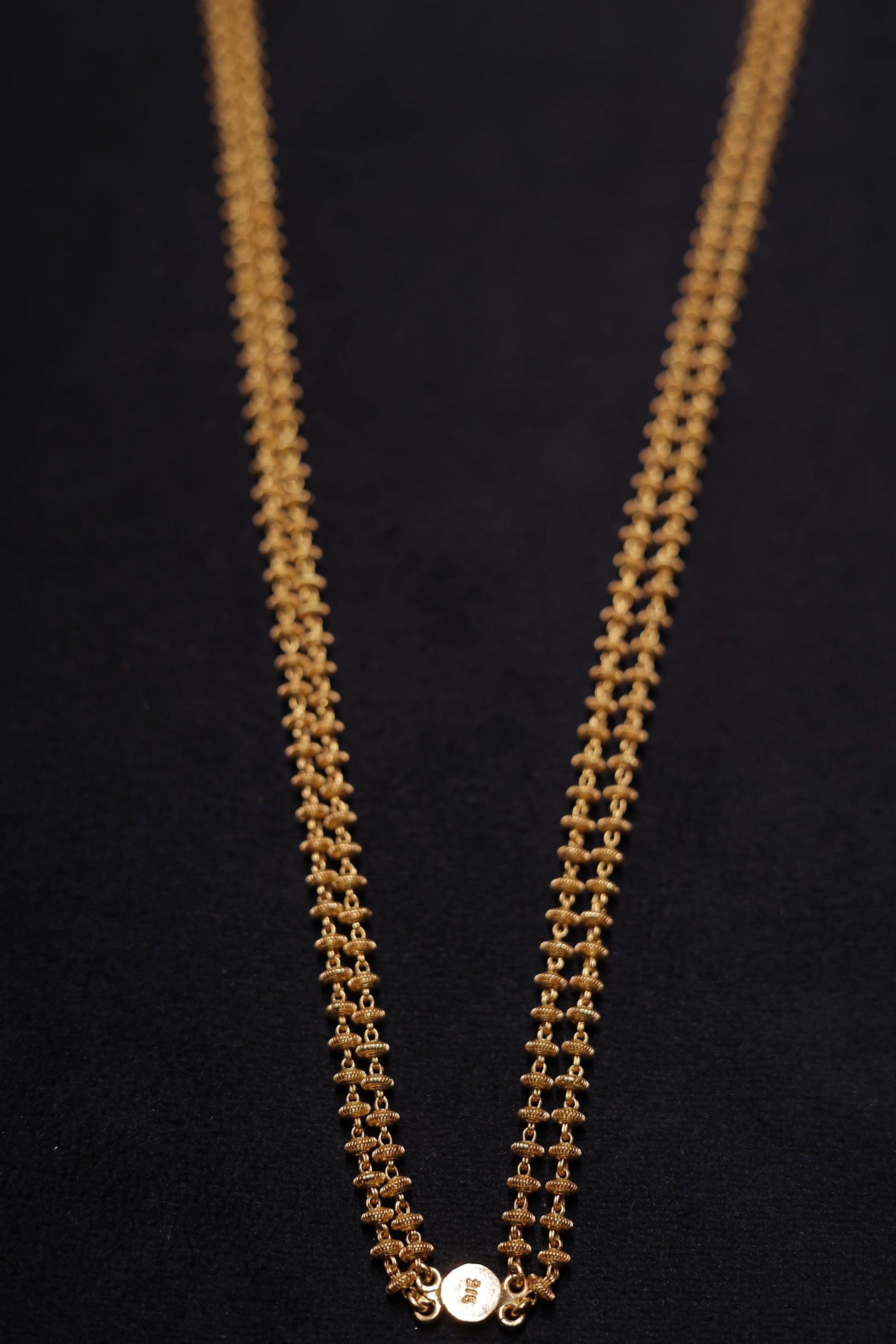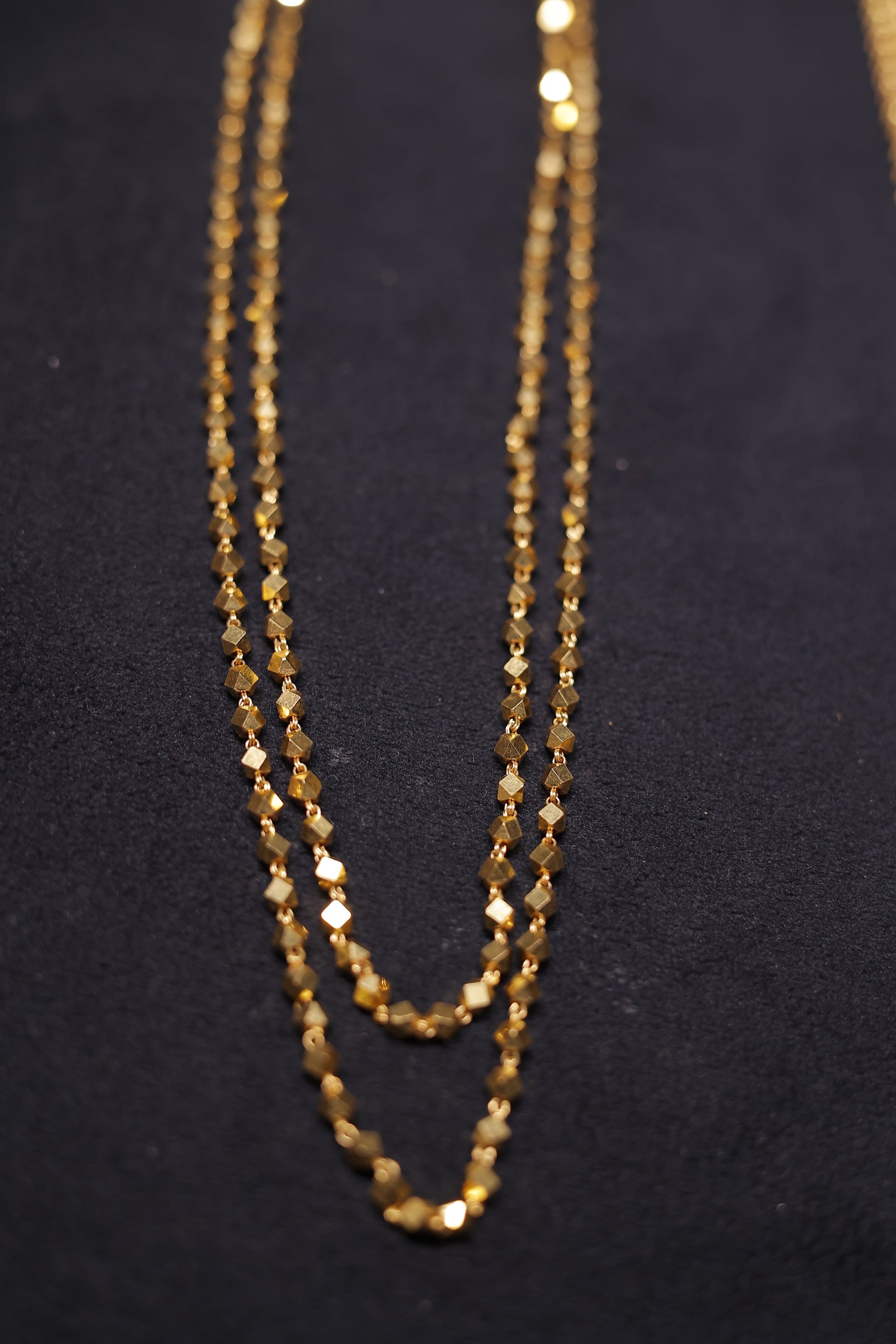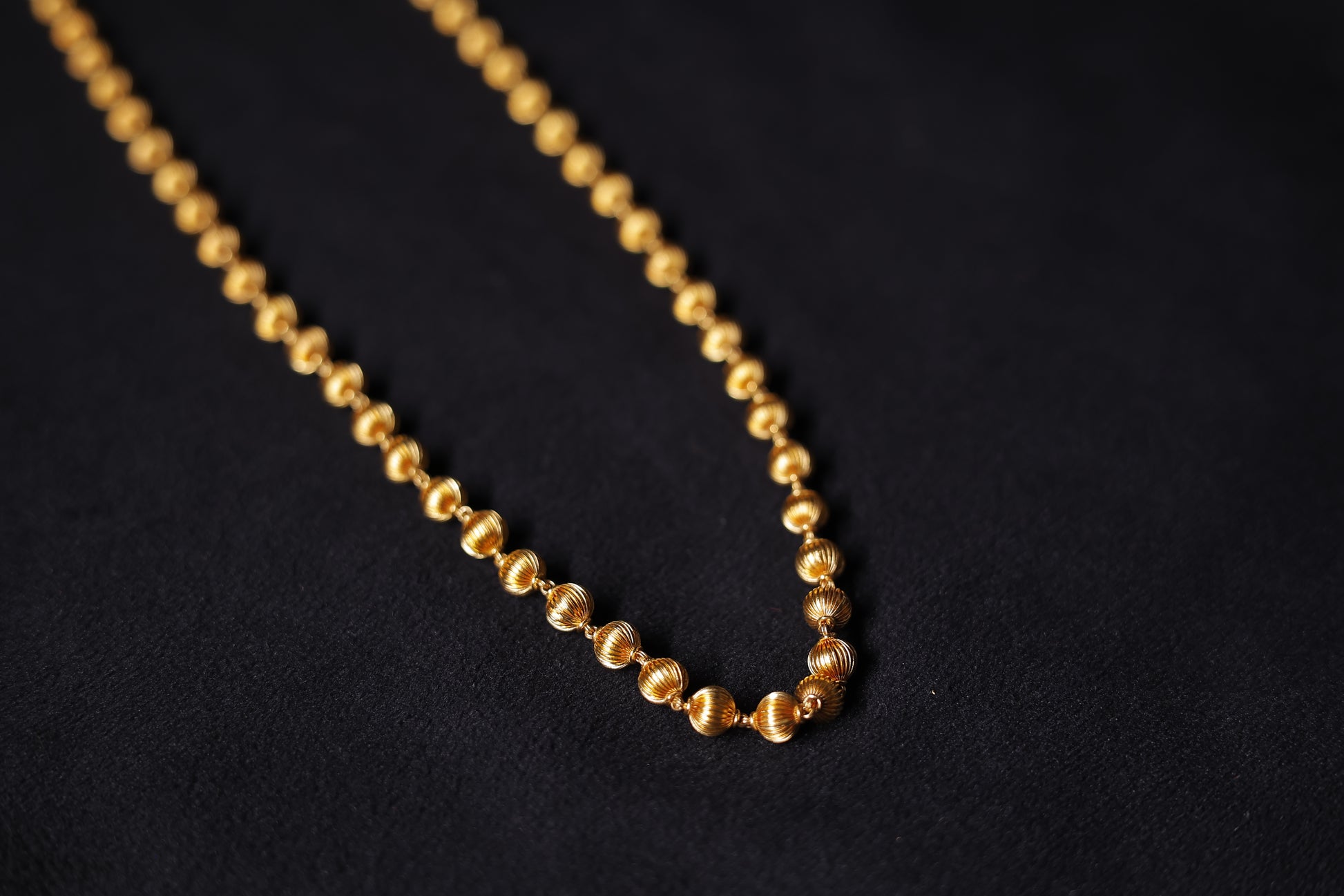 A diverse array of neckpieces, each with its unique charm. From classic gold bead strands to spiritual Rudraksha designs, this collection seamlessly blends tradition with elegance, offering something special for every style.