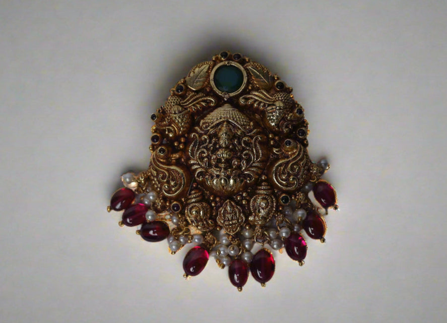 This stunning silver Jadebille is beautifully enhanced with a rich gold polish, giving it a regal and luxurious appearance. The intricate detailing throughout the piece highlights expert craftsmanship, with fine patterns that reflect both tradition and sophistication. At the end, the hanging accent adds an elegant touch, creating a graceful flow to the design. Perfect for religious or festive occasions, this Jadebille is a statement piece that combines timeless beauty with modern refinement. Its delicate balance of gold polish and detailed artistry makes it a truly exceptional addition to any collection.