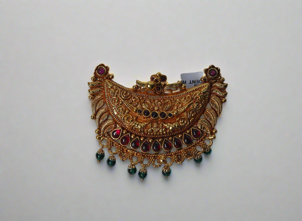 This stunning silver Jadebille is beautifully enhanced with a gold polish, adding a touch of luxury and elegance. The intricate design is complemented by a creative and artistic structure, making it a truly unique piece. Hanging at the end, it adds a graceful, decorative flair to any space. Perfect for those seeking a blend of traditional beauty and modern craftsmanship, this Jadebille serves as an exquisite addition to spiritual or festive occasions, symbolizing wealth, prosperity, and divine blessings.